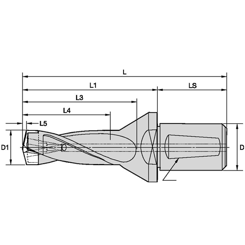 • O mecanismo do parafuso de trava central garante fixação segura do inserto, resultando em segurança do processo e longa vida útil da ferramenta para o corpo da broca e o inserto.