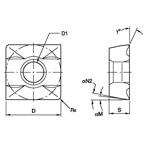 | SAP Material Number | ISO Catalog Number | Grade | D | D1 | S | Rε | GAA | Clearance Angle Major |